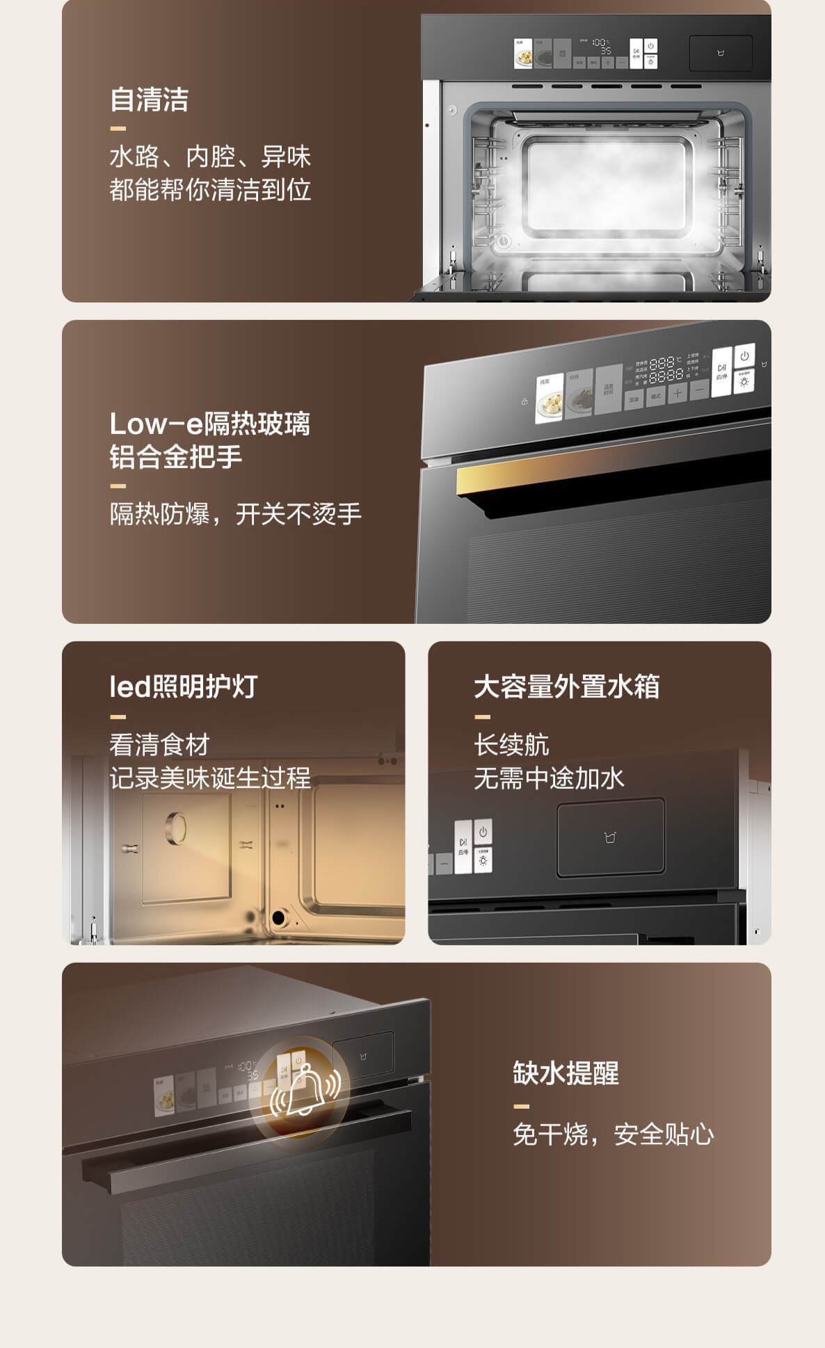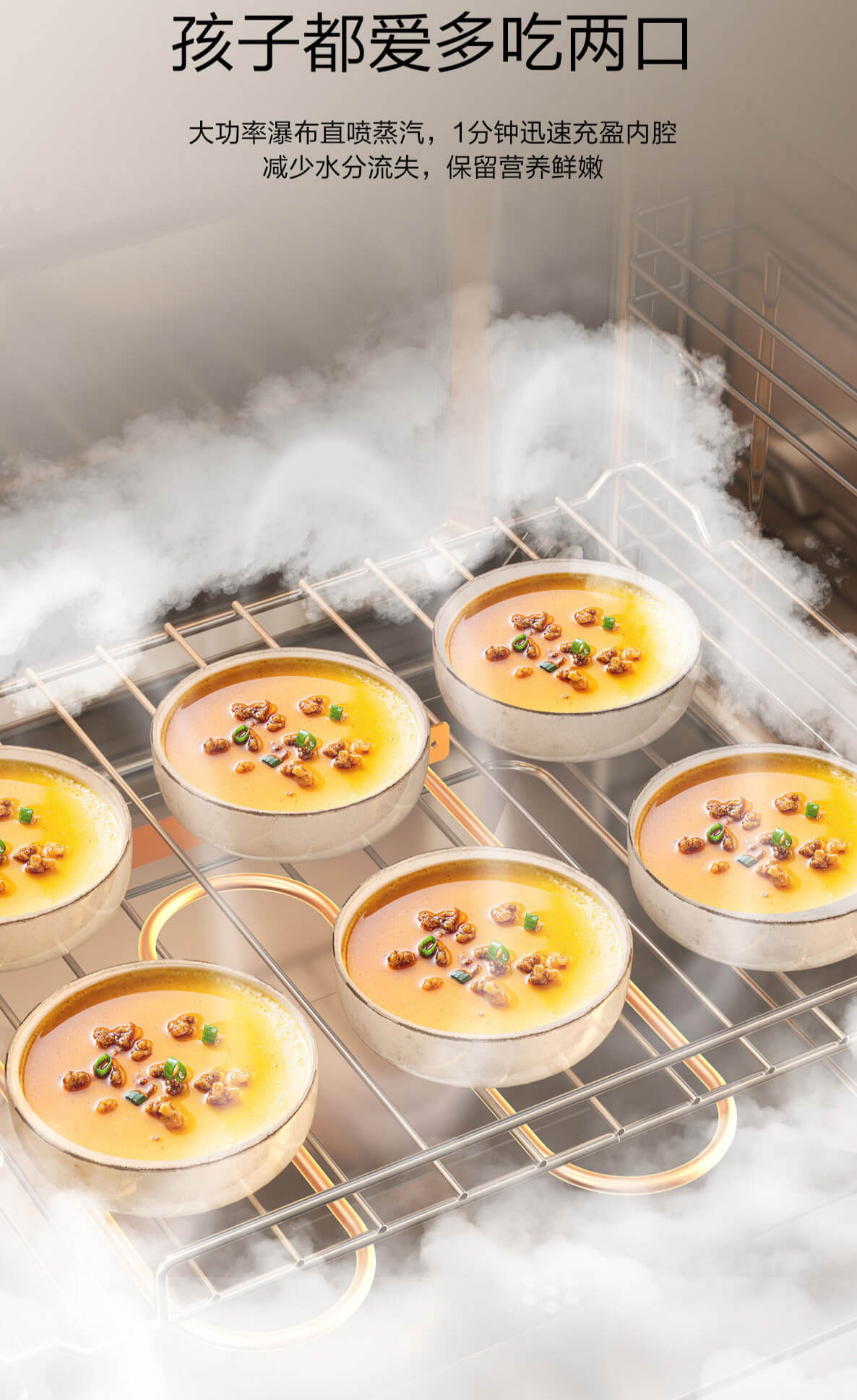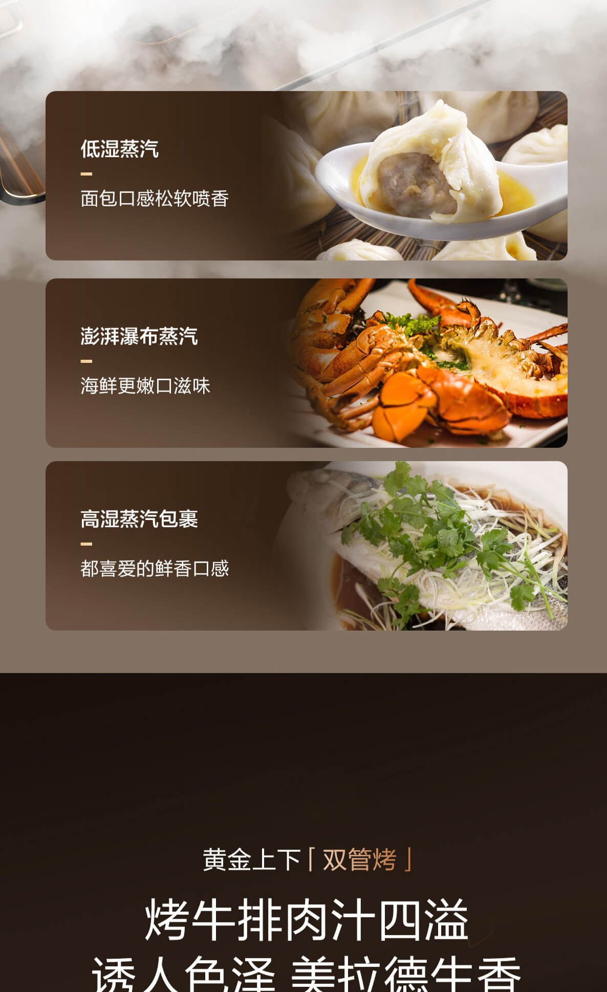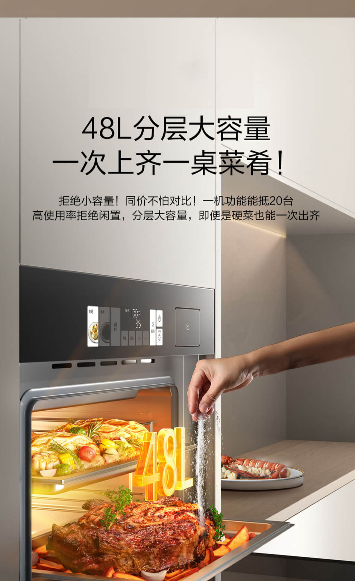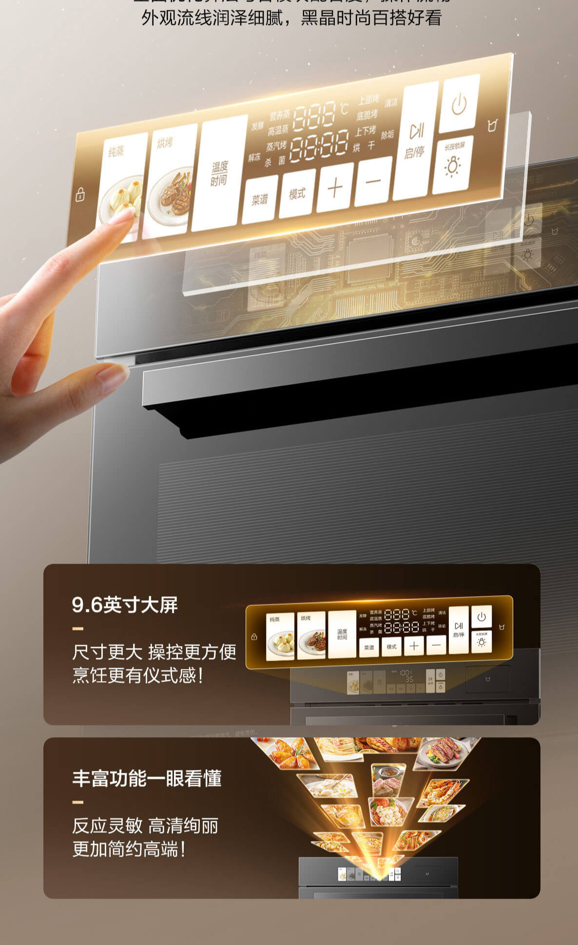 靈犀炫彩大屏,48L大容量,十二大專業蒸烤模式,上下雙管烤,直噴瀑布蒸汽,全304食品級不銹鋼,一鍵高溫殺菌