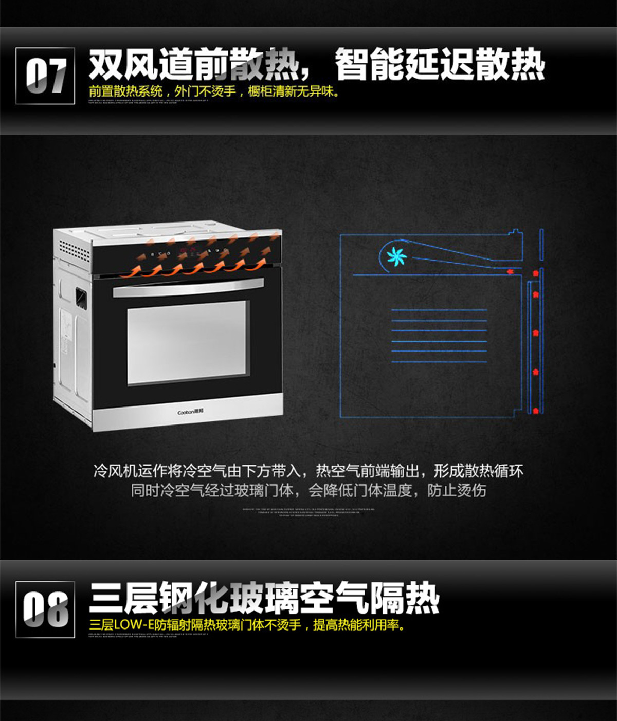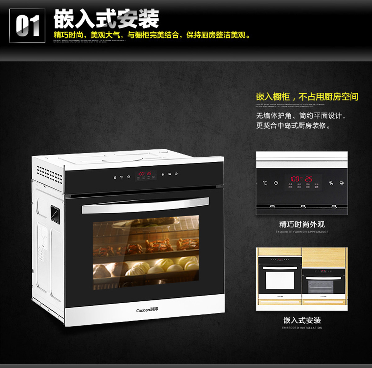 60L大容量;內置全自動精確控溫探頭;立體循環熱風;高溫搪瓷內膽;